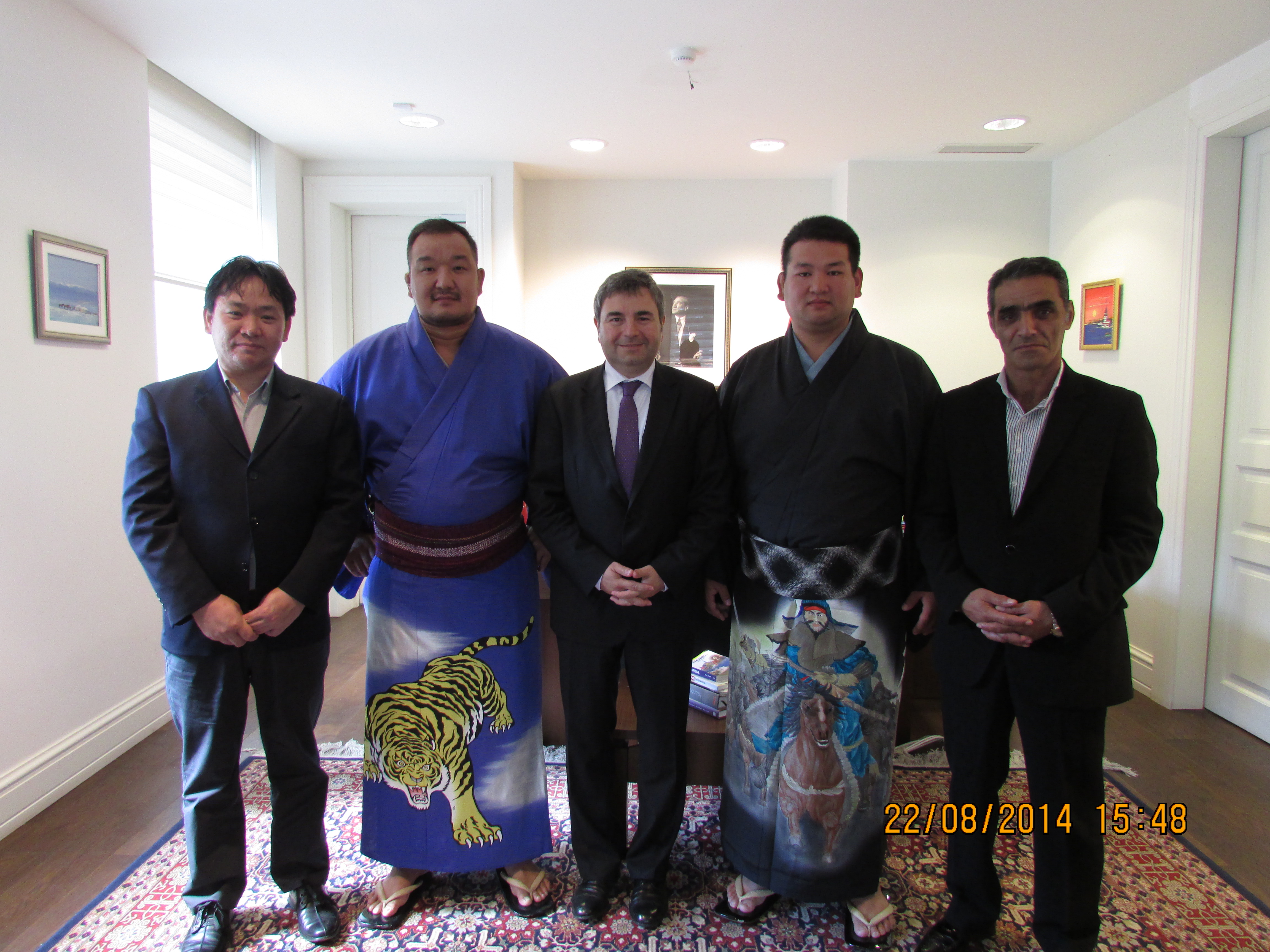 Büyükelçi Murat Karagöz Moğolistan Sumo Federasyonu Genel Sekr. ve TÜMOSİAD Türkiye Onursal Başkanını kabul etmiştir.