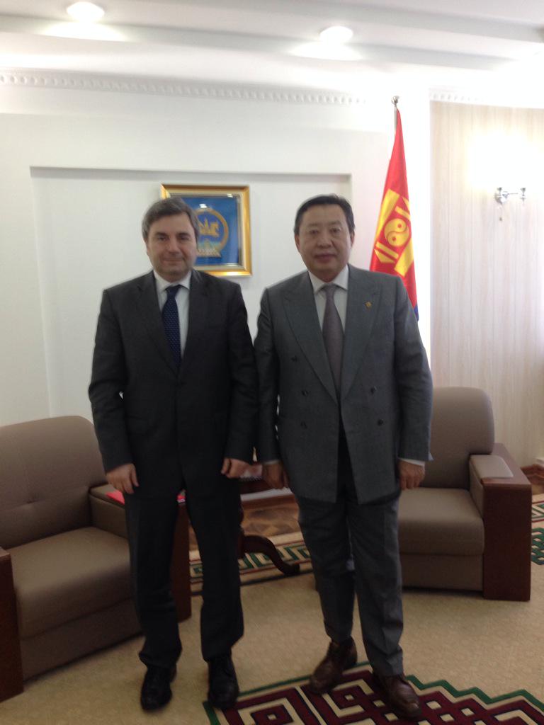 Büyükelçi Murat Karagöz bugün (2 Mart) Moğolistan Enerji Bakanı Dashzevegiin Zorigt’e nezaket ziyaretinde bulunmuştur. Görüşmede taraflar iki ülke ilişkilerinin enerji alanında gelişmesi hususunda ciddi bir potansiyel bulunduğunu, Moğolistan’ın Türk özel sektörünün, bilhassa yenilenebilir enerji alanındaki nitelikli insan kaynakları ile bilgi ve tecrübe birikiminden yararlanması konusunda mutabık olunduğunu belirtmişlerdir.