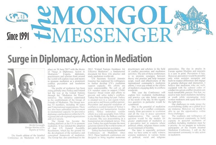SAYIN BAKANIMIZ TARAFINDAN, IV. İSTANBUL ARABULUCULUK KONFERANSI (30 HAZİRAN 2017) VESİLESİYLE YAYINLANAN MAKALE